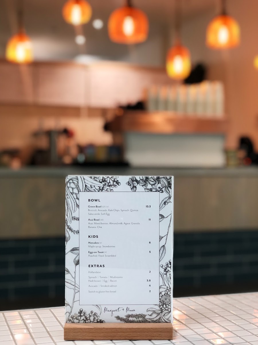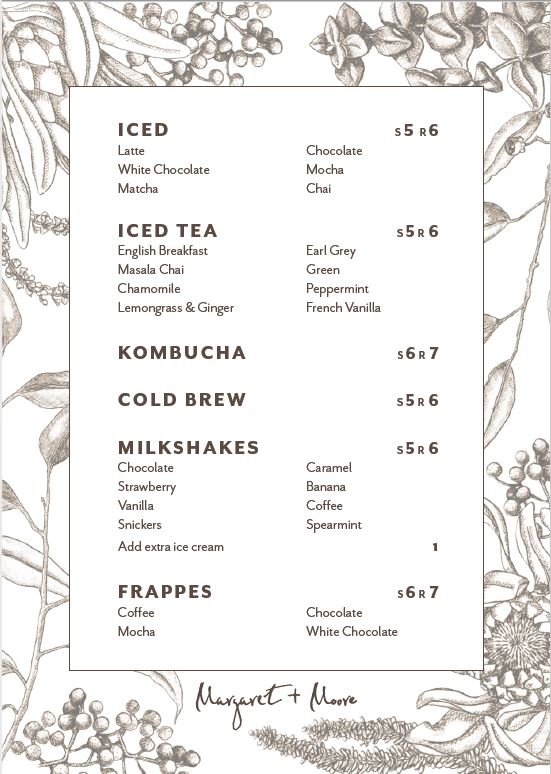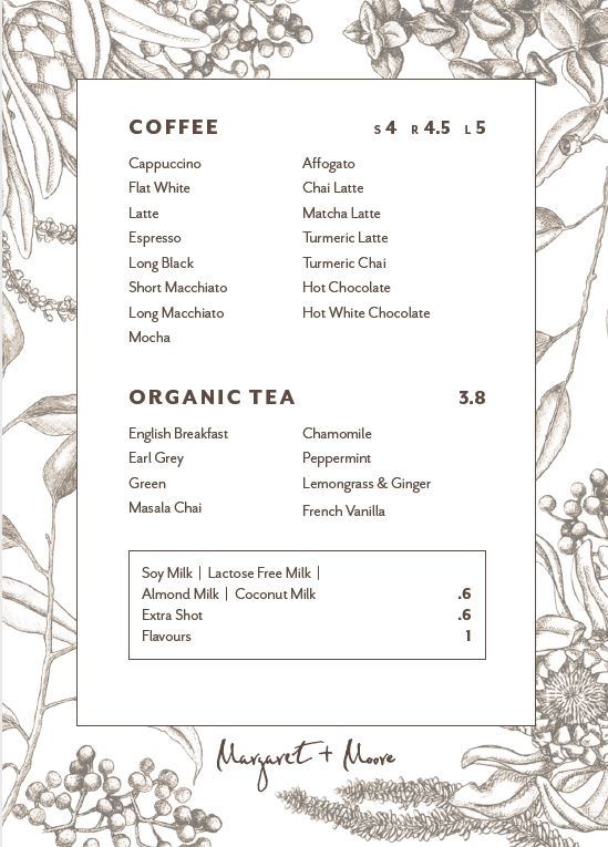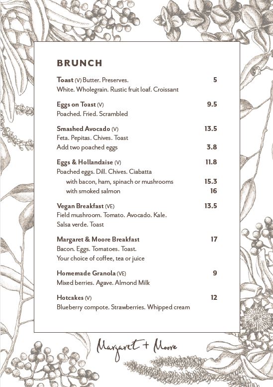 Margaret + Moore Cafe Menu